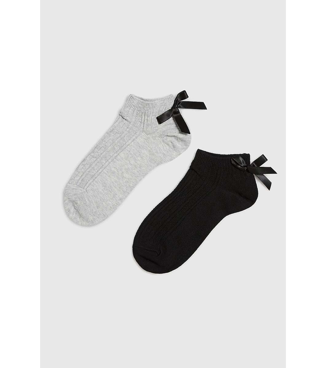 Moodo Set 2 perechi de șosete cu panglici gri și negru Țesătură înaltă din bumbac