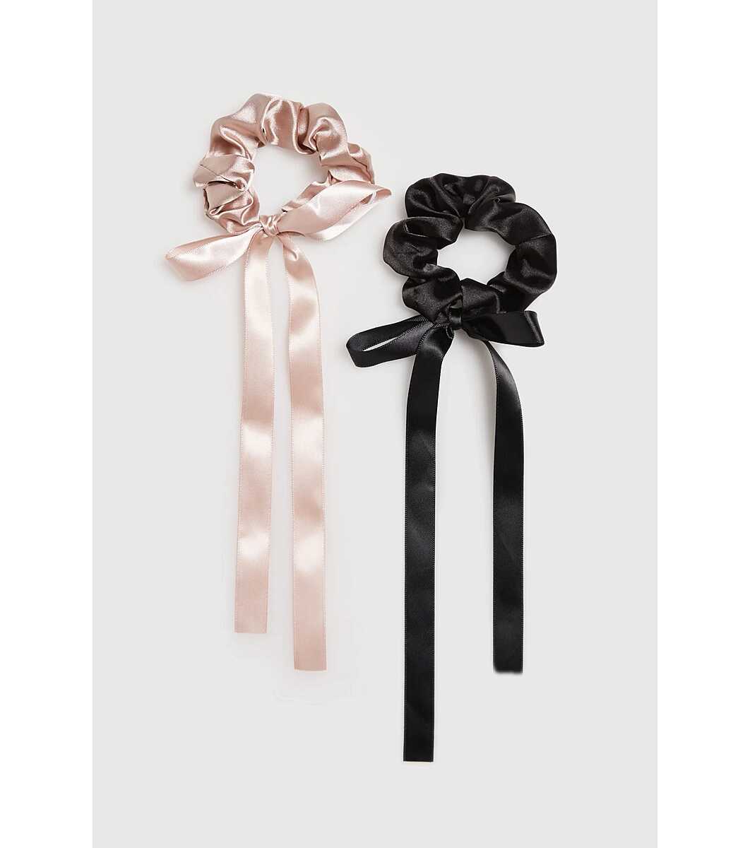 Set 2 scrunchies din satin negru și frasin trandafir