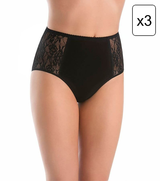 Set 3 buc. chiloți negri din bumbac cu dantelă