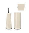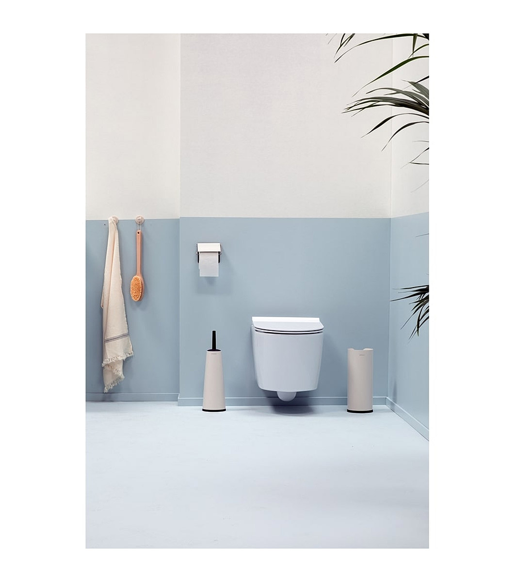 Perie de toaletă cu un suport care ascunde discret peria însăși, fără a o face incomod de utilizat.