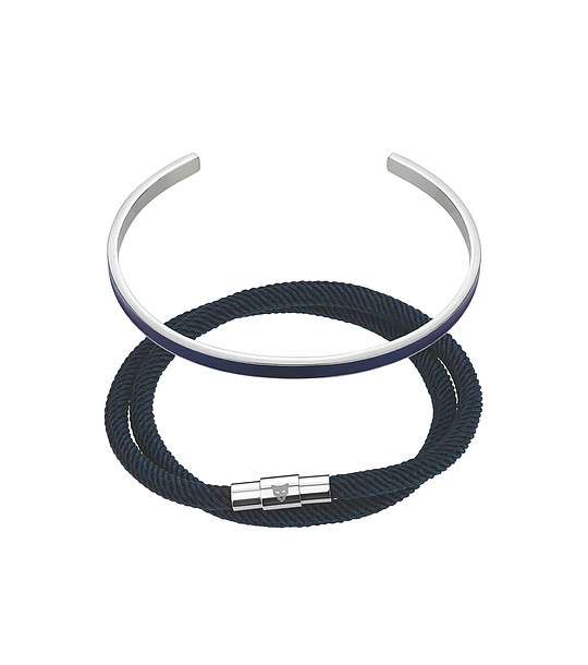 Marc Lauder Set brățări bărbătești argintii și albastru închis Bratara barbateasca argintie cu margine Bergamo albastru inchis