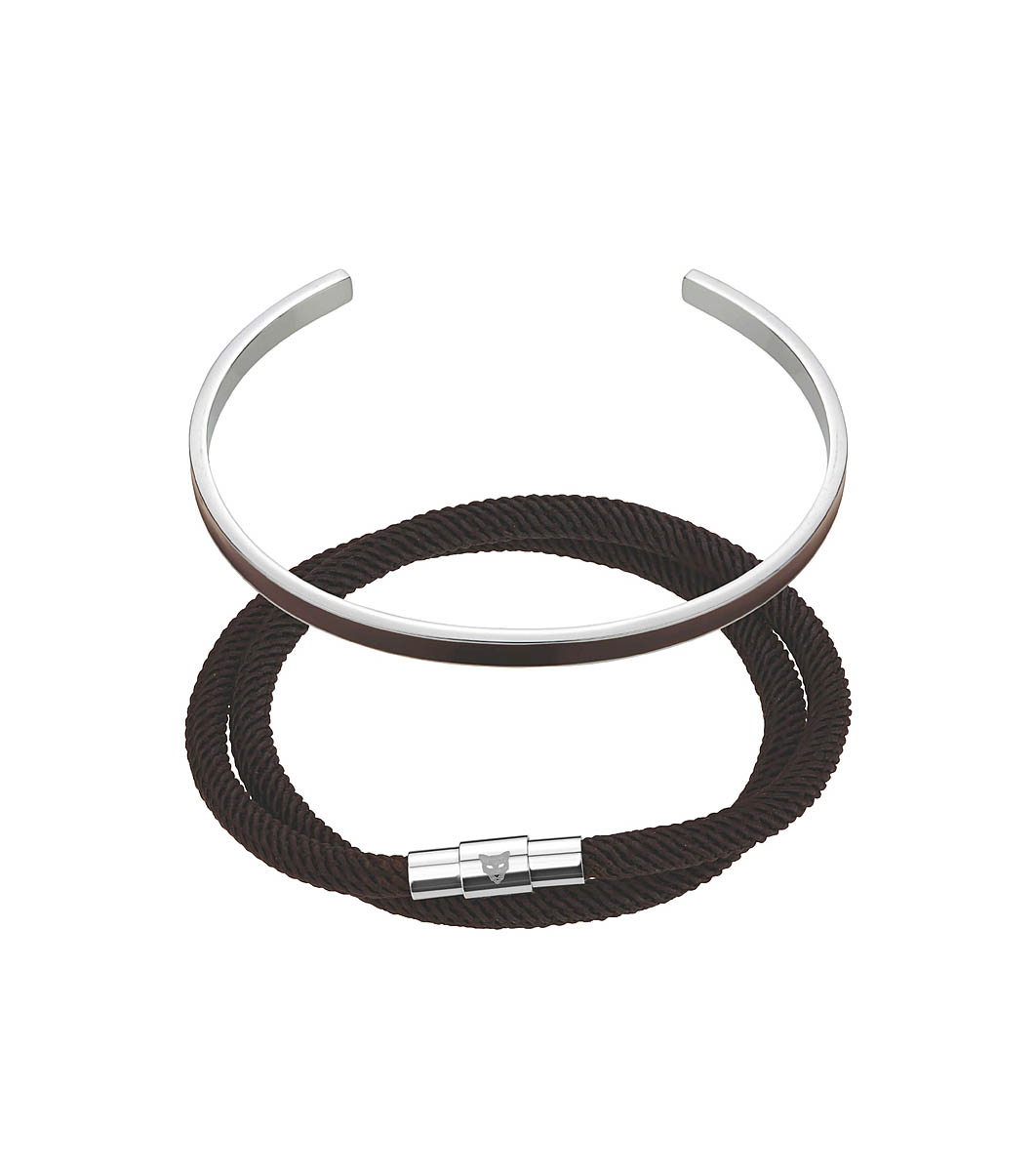 Set brățări bărbătești argintii și maro închis