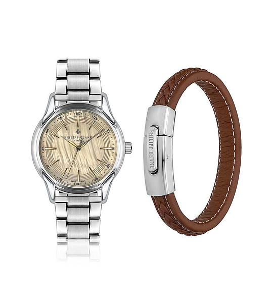 Philipp Blanc Set ceas Worb si bratara din piele maro