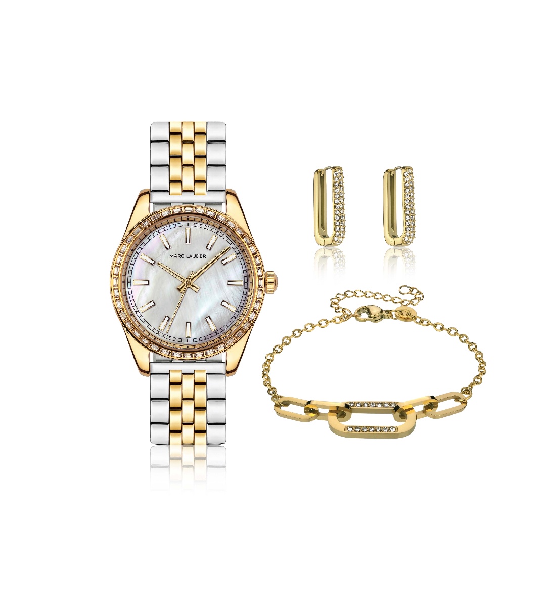 Marc Lauder Set ceas, cercei și brățară din argint și auriu Cadran analog