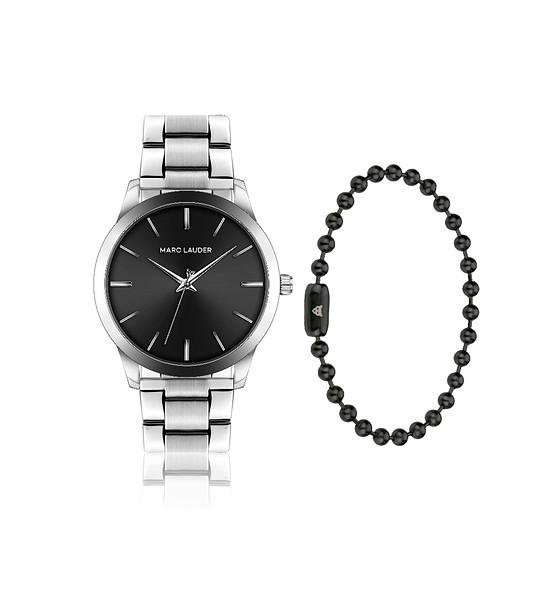 Marc Lauder Set ceas și brățară Lyon argintiu și negru Cadran analog