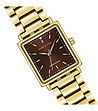 Ceasul are o carcasă dreptunghiulară de 26 x 34 mm și un cadran maro tip „raze de soare”.