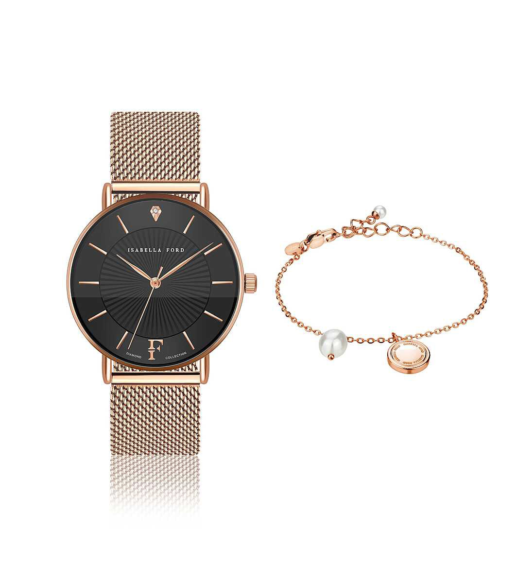 Isabella Ford Set ceas și brățară de damă din aur roz Naomi