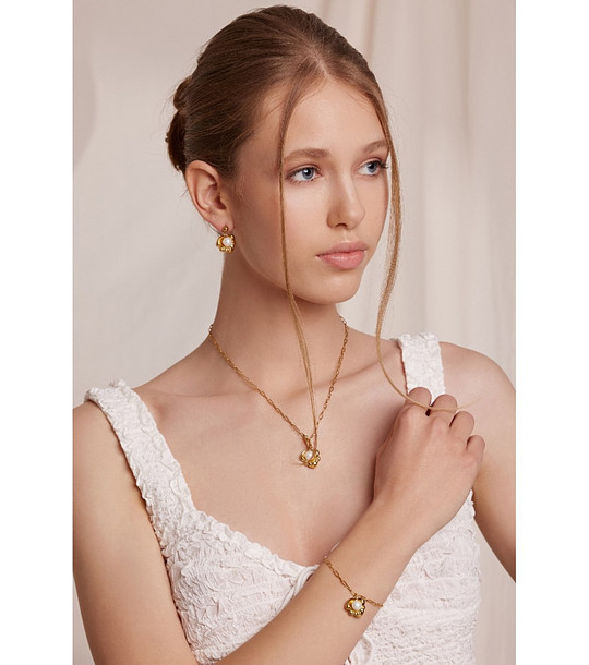 Set colier, cercei și brățară din aur PearlNest