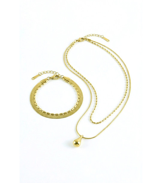 Set colier și brățară din aur pentru femei cu pandantiv în formă de lacrimă