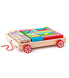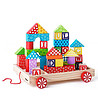 Încântă copiii cu un cărucior pe care îl pot trage și apoi construiește un castel cu materialele din interior. Set de construcție din lemn colorat, potrivit chiar și pentru cei mai tineri.