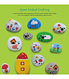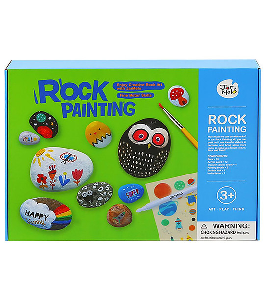 Setul creativ include vopsele, pensule, pietre special rotunjite cu o suprafață netedă, potrivite pentru decor, precum și un manual cu instrucțiuni pe care le puteți urma.