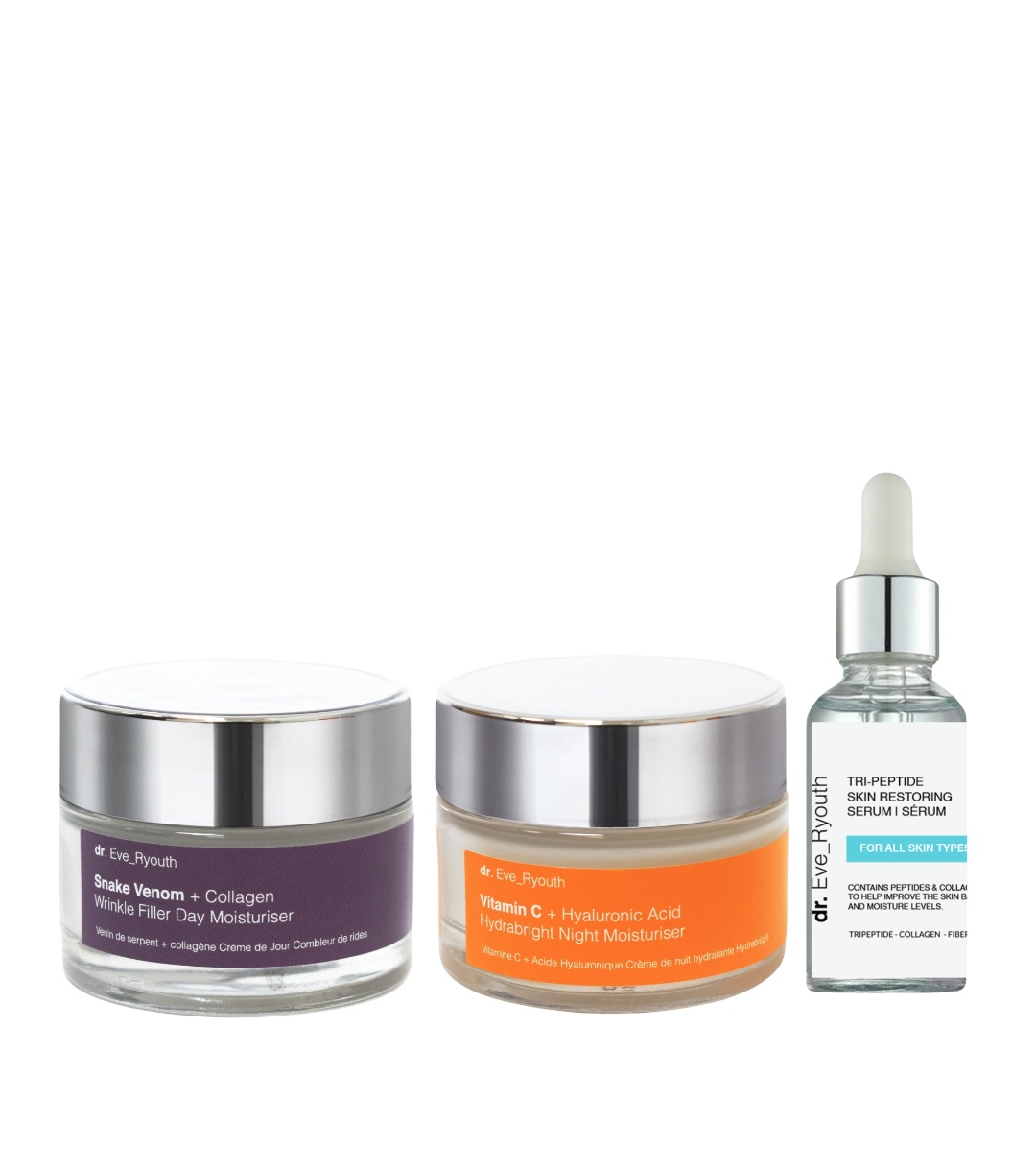 - Conține o peptidă sintetică din venin de șarpe care reduce ridurile și liniile fine și, în combinație cu colagenul, strânge pielea și îi conferă un aspect tineresc.