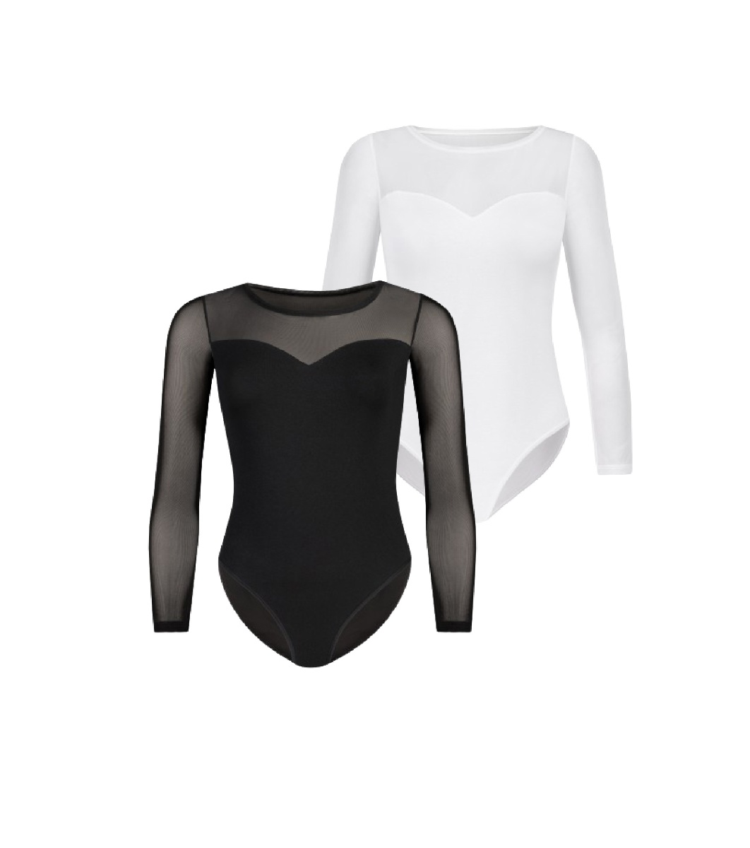 Teyli Set de 2 body-uri alb-negru cu mâneci transparente Inimă