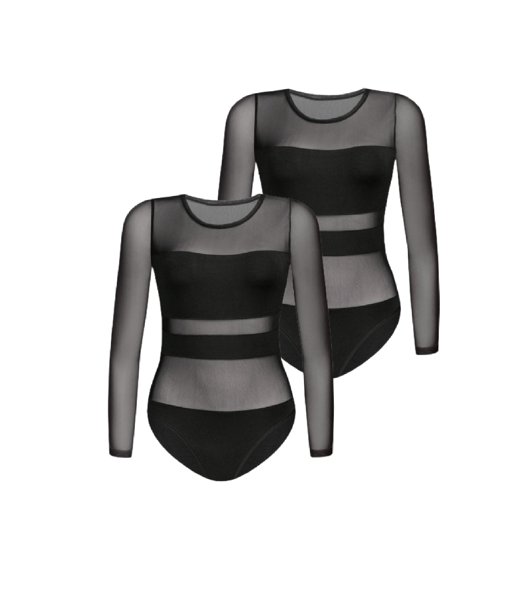 Teyli Set de 2 body-uri negre cu detalii transparente Vivian Body-ul se mulează perfect pe siluetă