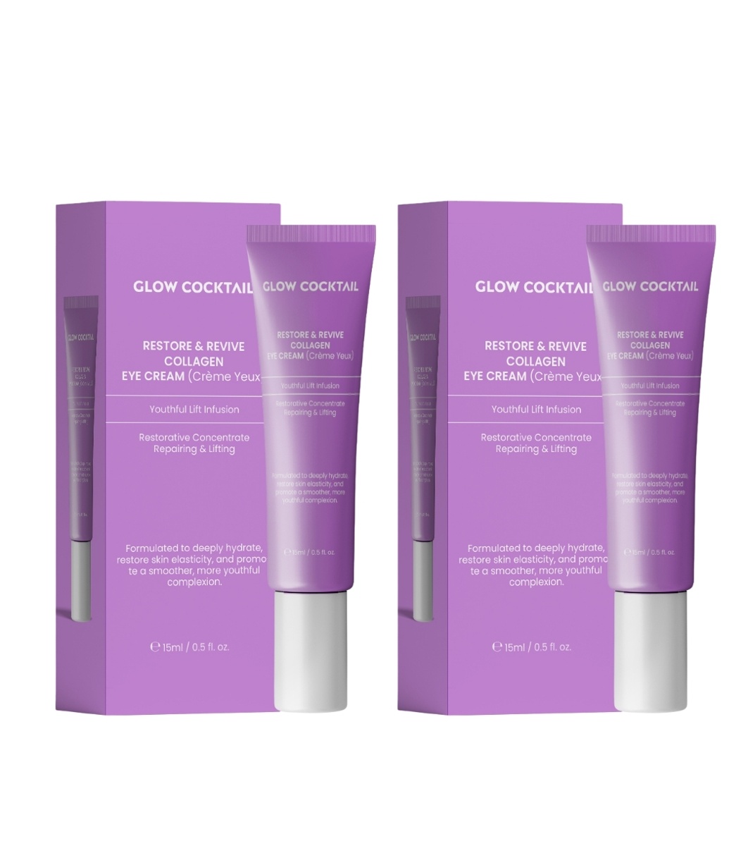 Glow Cocktail London Set de 2 creme pentru ochi cu colagen 15 ml • Îngrijire cu colagen pentru a restabili densitatea, elasticitatea și strălucirea naturală a pielii.