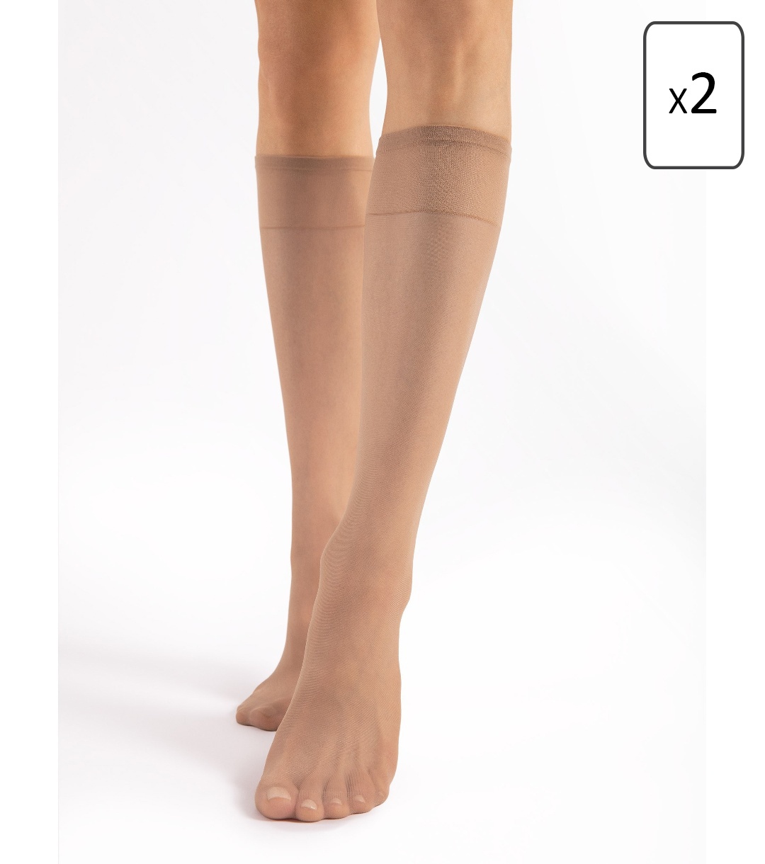Fiore Set de 2 șosete bej 3/4 Pola 15 DEN Șosete subțiri și elegante de damă până la genunchi