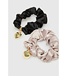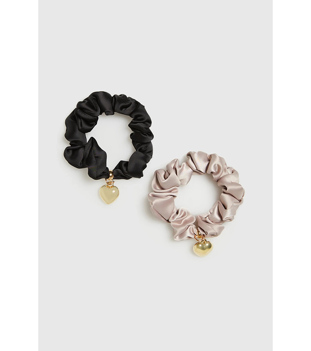 Set de 2 scrunchies negru și frasin trandafir cu pandantiv inimă