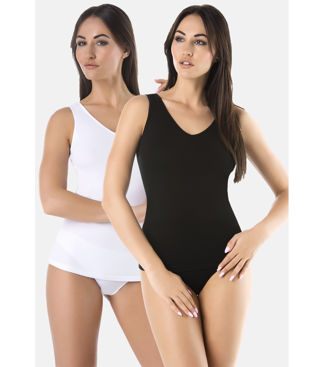 Teyli Set de 2 topuri din bumbac alb-negru Claudia Decolteu în V