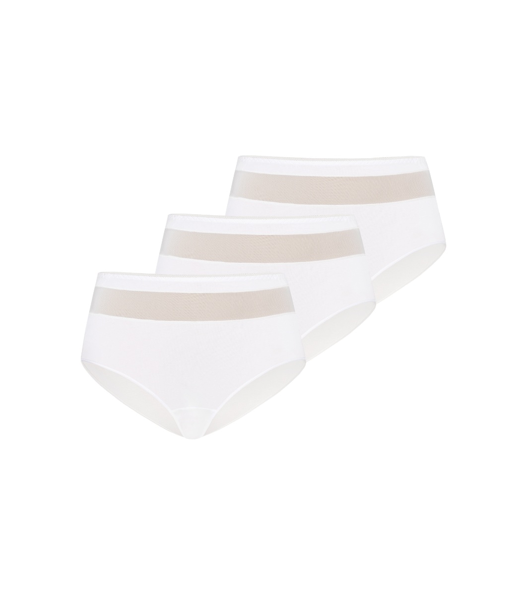 Teyli Set de 3 bikini albi din bumbac cu garnitură transparentă Vera Acest set de bikini pentru femei cu talie înaltă, din bumbac, este un accesoriu indispensabil pentru orice colecție de lenjerie intimă. Fabricate din bumbac de înaltă calitate, aceste bikini oferă confort și respirabilitate pe tot parcursul zilei, fiind ideale pentru purtarea zilnică.