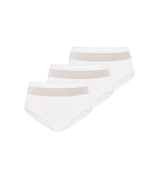 Set de 3 bikini albi din bumbac cu garnitură transparentă Vera