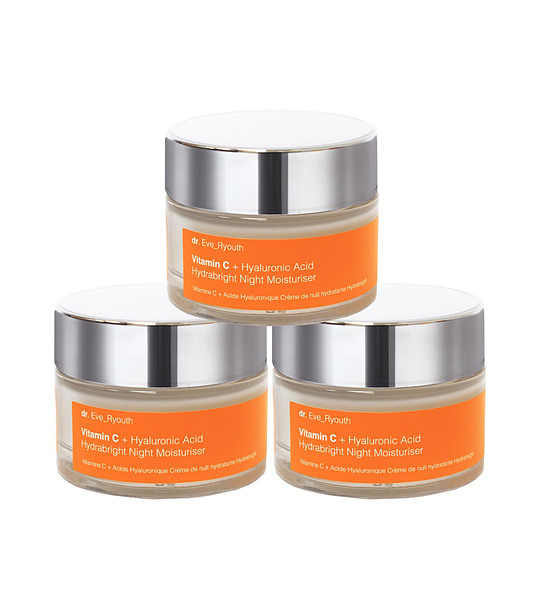 Combinație de vitamină C și acid hialuronic, care stimulează hidratarea, netezește pielea obosită și o face densă.