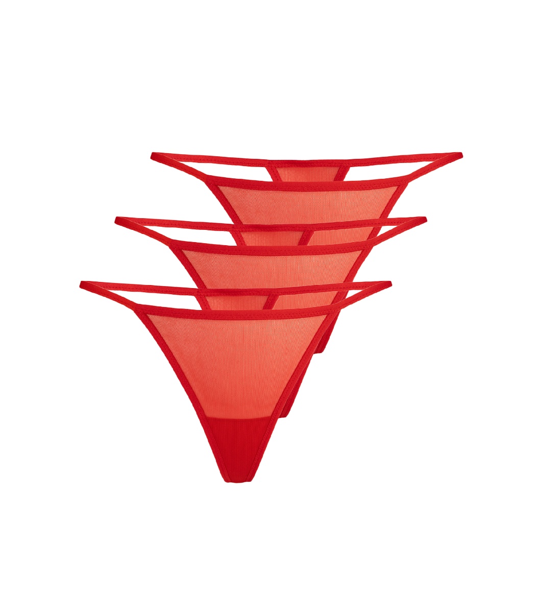 Teyli Set de 3 chiloți tanga Paaski roșii Acești chiloți tanga sunt special concepuți pentru a accentua și a pune în valoare fesele, făcându-le să pară mai plinuțe și mai bine conturate.