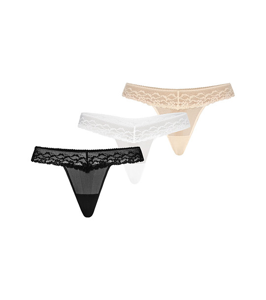 Teyli Set de 3 chiloți tanga din dantelă Leo Confecționați cu cea mai mare atenție la detalii, acești chiloți tanga prezintă un delicat motiv floral din dantelă, care este atât feminin, cât și seducător.