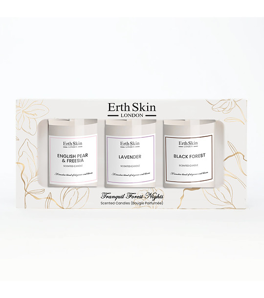 Erth Skin London Set de 3 lumânări parfumate • Transformați-vă spațiul cu strălucirea liniștitoare și parfumurile captivante ale setului nostru premium de lumânări. • Acest trio include: