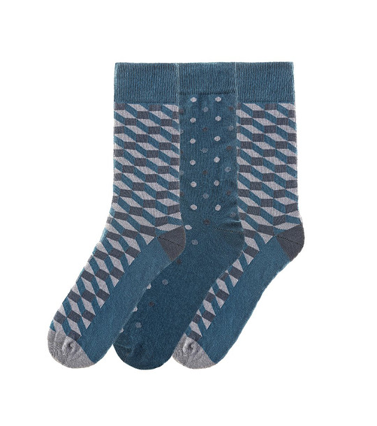 Set de 3 perechi de șosete bărbătești din bumbac cu imprimeu în nuanțe de albastru
