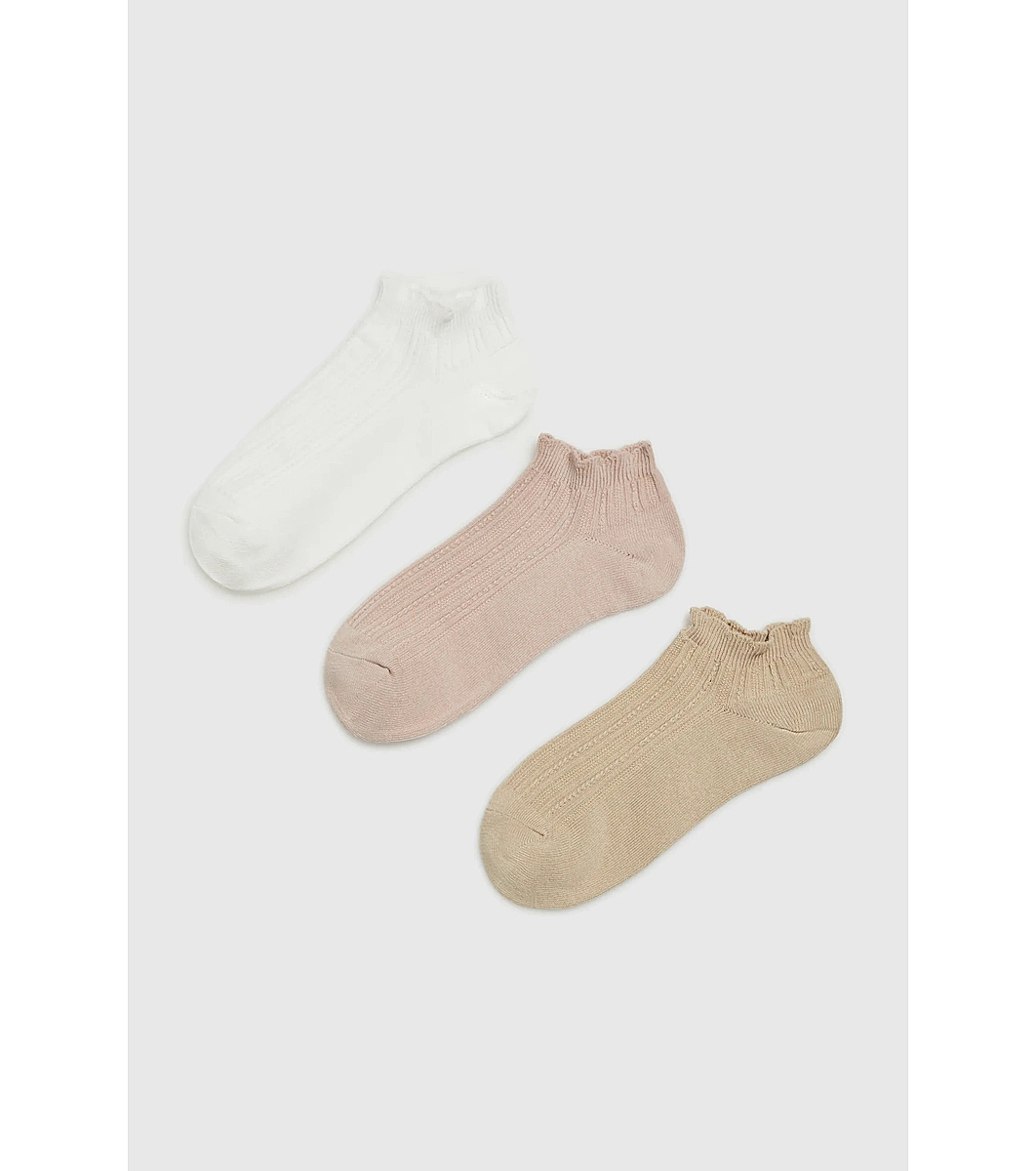 Moodo Set de 3 perechi de șosete de damă alb, bej și pudrat Țesătură cu conținut ridicat de bumbac