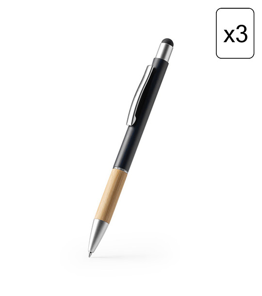 Stamina Set de 3 pixuri OLTEN negre Pix metalic cu finisaj mat, mâner din bambus și indicator tactil