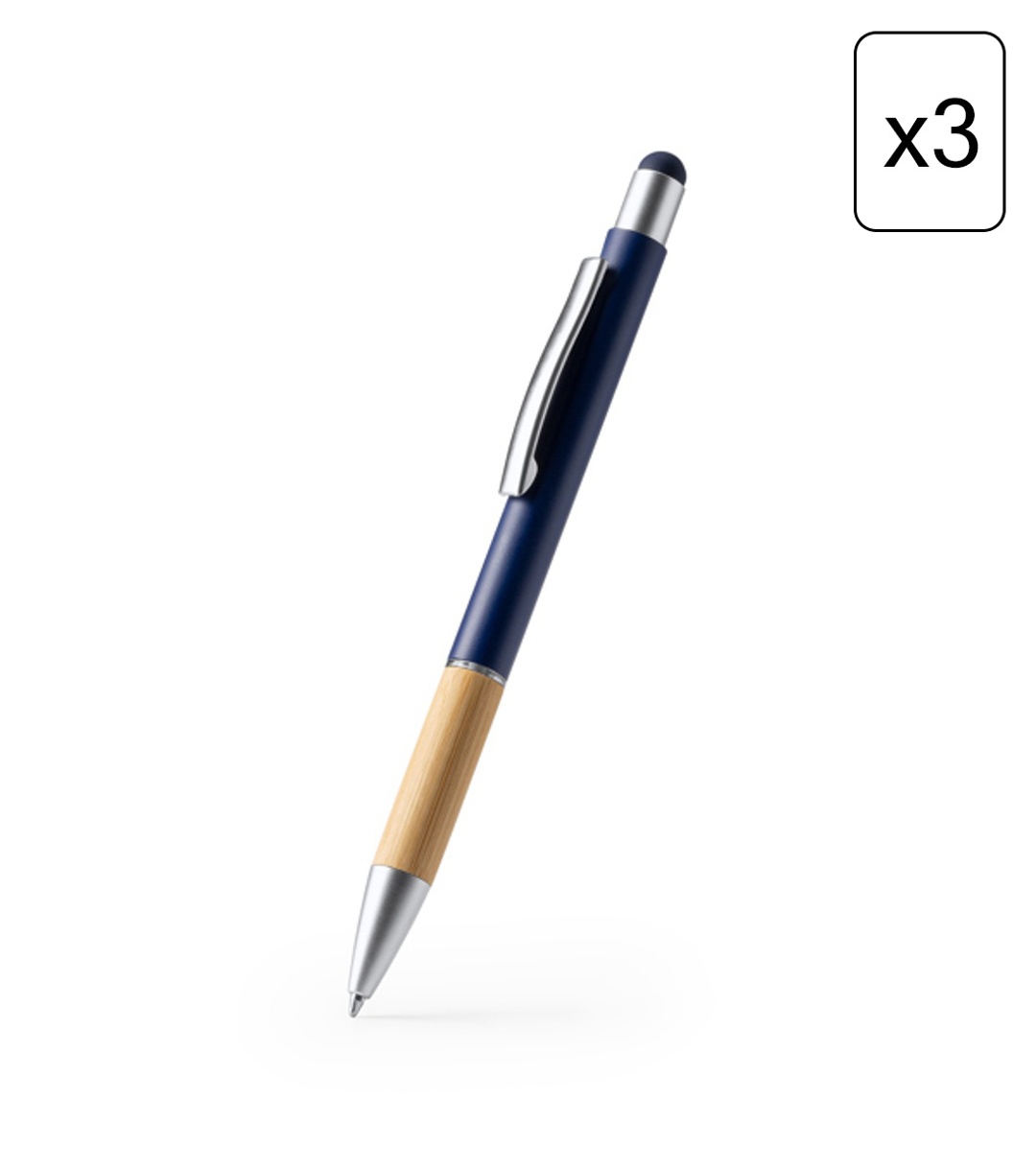 Stamina Set de 3 pixuri albastru închis OLTEN Pix metalic cu finisaj mat, mâner din bambus și indicator tactil