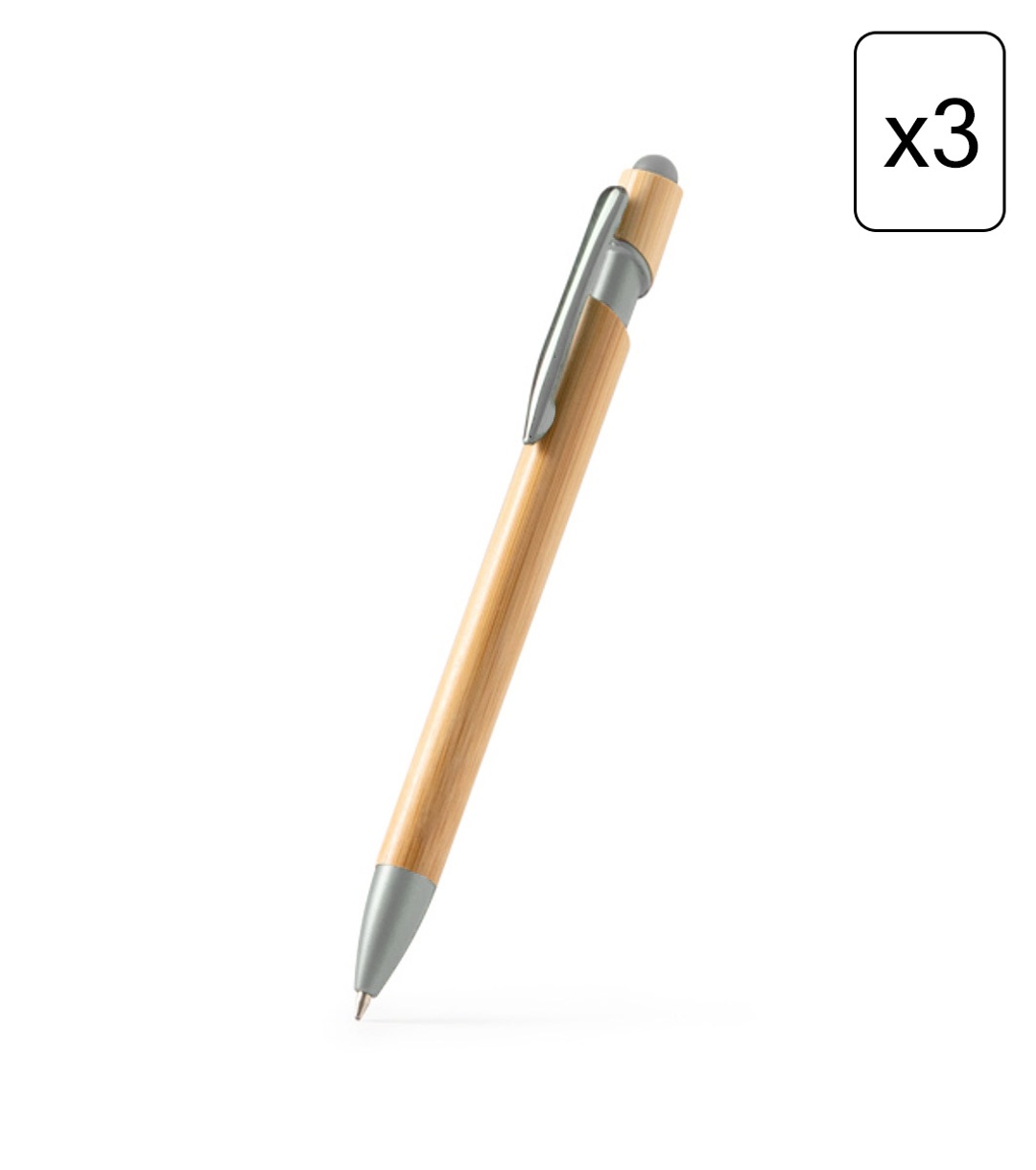 Stamina Set de 3 pixuri cu stylus cu detalii argintii VILON Pix cu corp din bambus