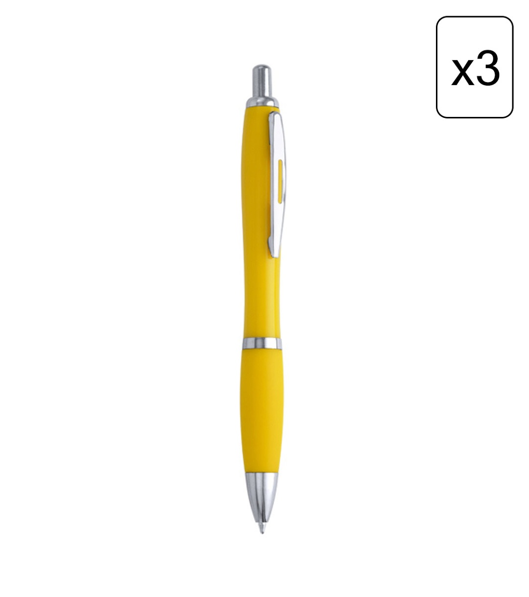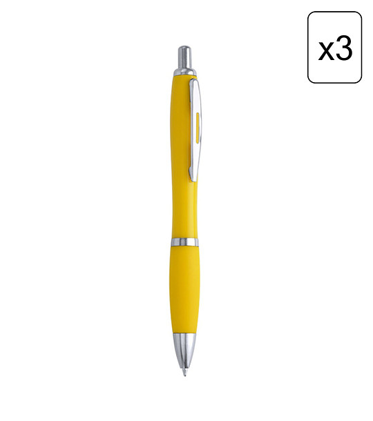 Stamina Set de 3 pixuri galbene MERLIN Pix retractabil din ABS cu prindere moale.
