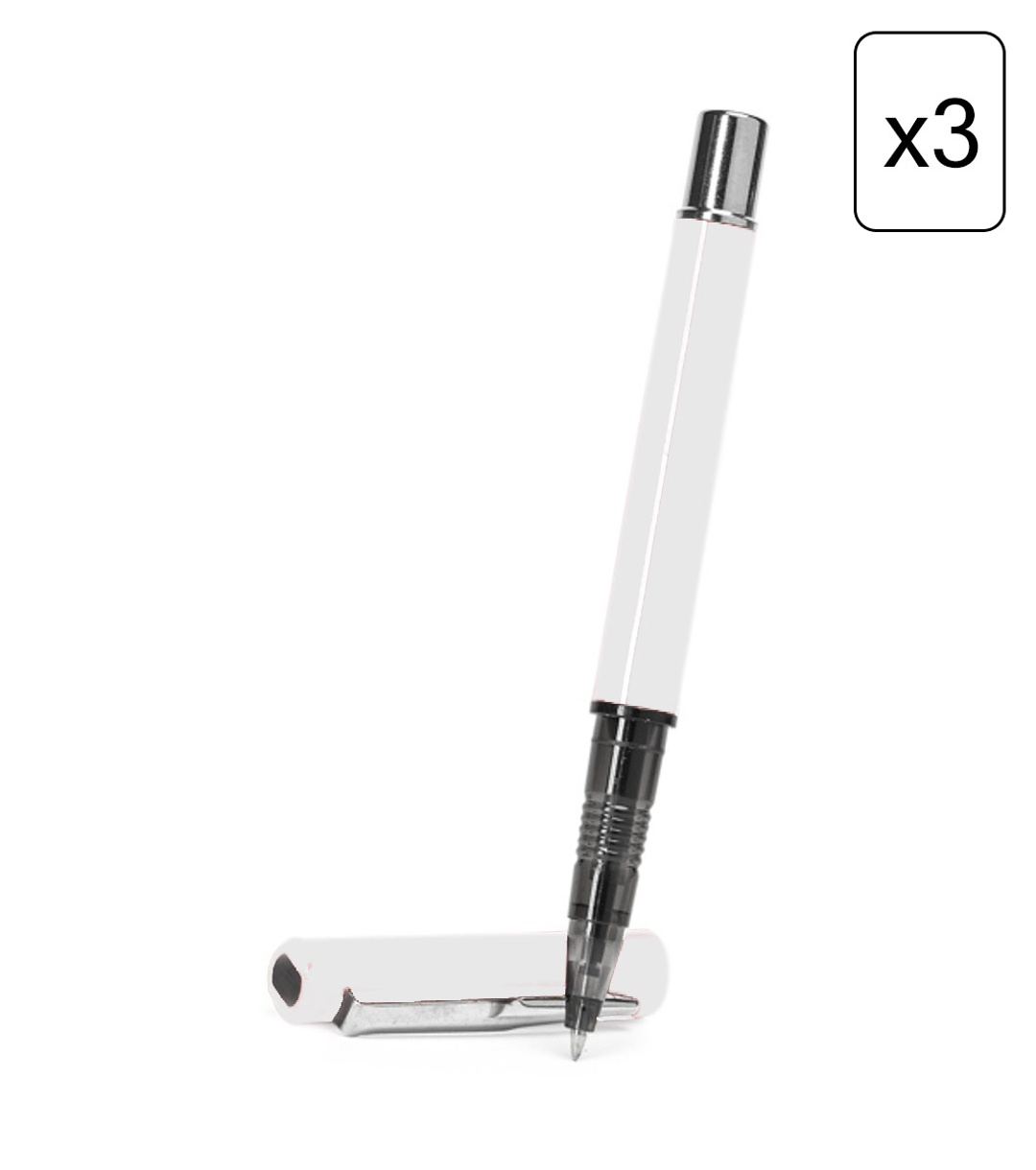 Stamina Set de 3 pixuri roller albe YAMA Roller cu clip metalic 1,0 mm.