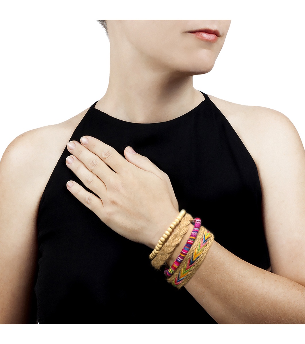 Sidartha Set de 4 brățări Patru brățări din cânepă, șnur de bumbac și mărgele de lemn