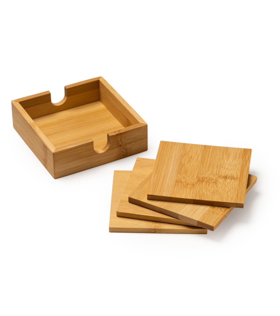 Set de 4 suporturi de pahare din bambus într-o cutie elegantă din bambus.