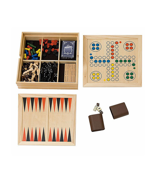 Setul conține o varietate de jocuri de masă și divertisment pentru întreaga familie, cum ar fi Ludo, sah, table, bakgamon, domino, carduri.