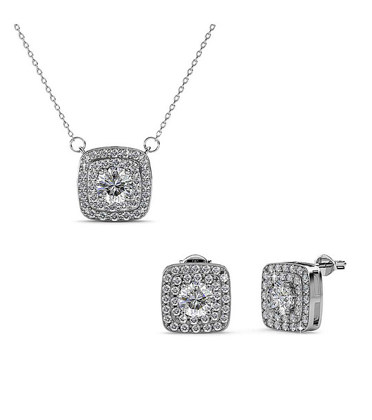Set cu cristale Swarovski placate cu aur alb de 18K