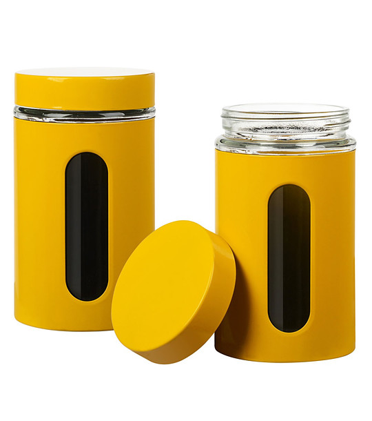 Muhler Set de borcane de depozitare galbene, 0,05 l, 2 bucăți Conceput pentru depozitarea ingredientelor și produselor uscate și lichide, atât în dulapurile de bucătărie, cât și în frigider. Setul conține: