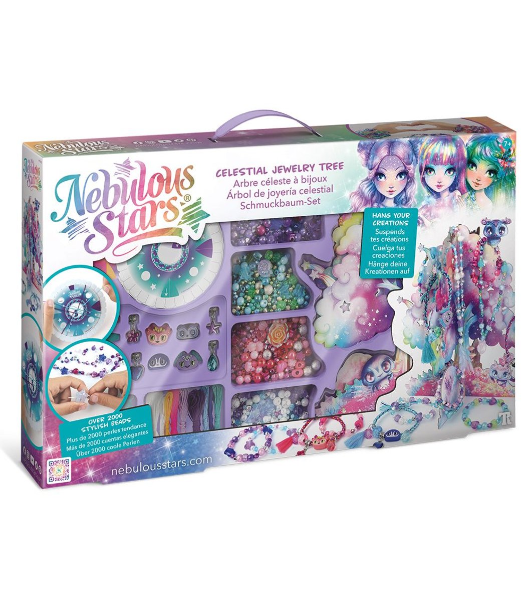 Și bradul unic pentru bijuterii nu numai că le organizează creațiile, ci devine și o decorațiune frumoasă pentru cameră. Cadoul perfect pentru fetițele cu vârsta cuprinsă între 7 și 12 ani care iubesc arta, sclipiciul și magia Stelelor Nebuloase.
