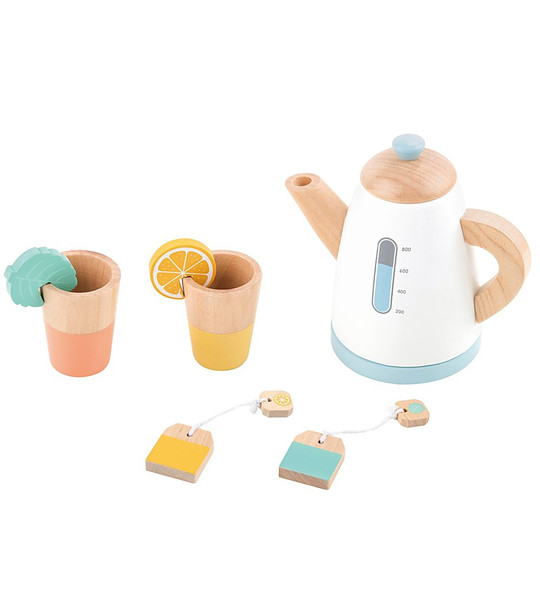 Lelin Toys Set de ceai din lemn cu ulcior Ești gata pentru o petrecere cu ceai? E timpul să te joci!