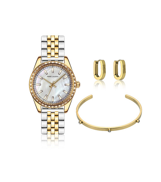 Marc Lauder Set de ceas, cercei și brățară pentru femei din argint și aur