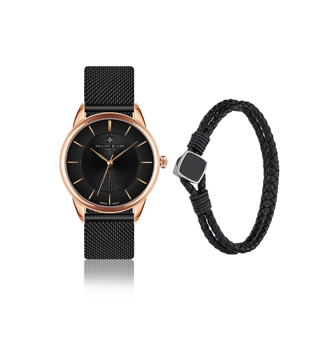 Philipp Blanc Set de ceas și brățară din piele Montreux neagră