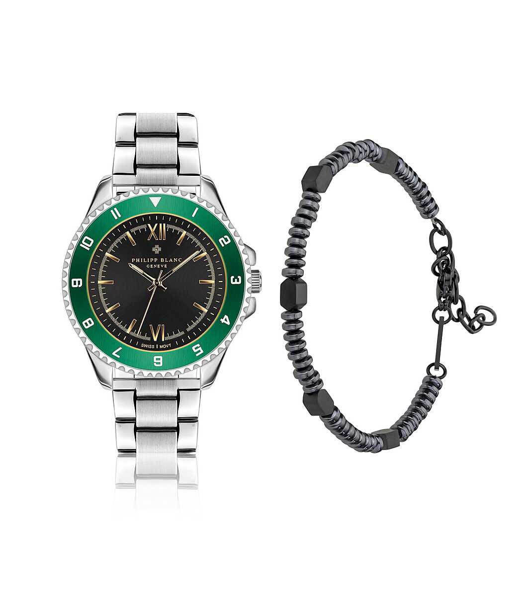 Philipp Blanc Set de ceas în argint și verde și o brățară Baden Cadran analogic