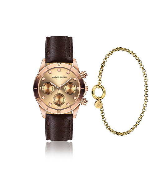 Marc Lauder Set de ceasuri de damă din auriu roz și maro cu brățară aurie Valencia