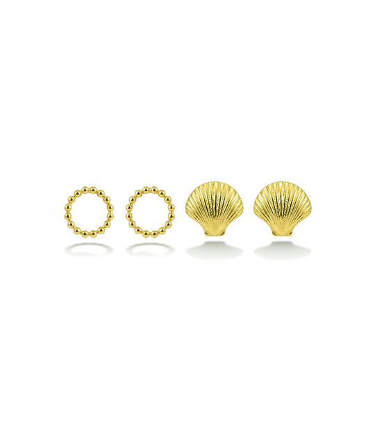 Victoria Walls Set de cercei aurii, bile, cercuri și scoici, din oțel inoxidabil Set de două perechi de cercei tip bilă