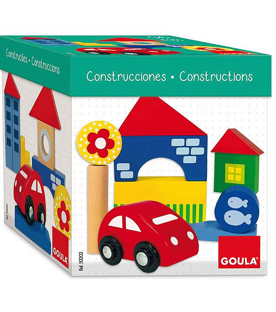 Goula Set de construcții din lemn pentru bebeluși City 26 piese Un set de construcții din lemn foarte frumos pentru cei mici. Pe lângă faptul că vor cunoaște viața în oraș, vor avea ocazia să se dezlănțuie și să-și creeze propriile versiuni ale unui oraș sau ale altei intrigi, inerente doar imaginației copiilor.