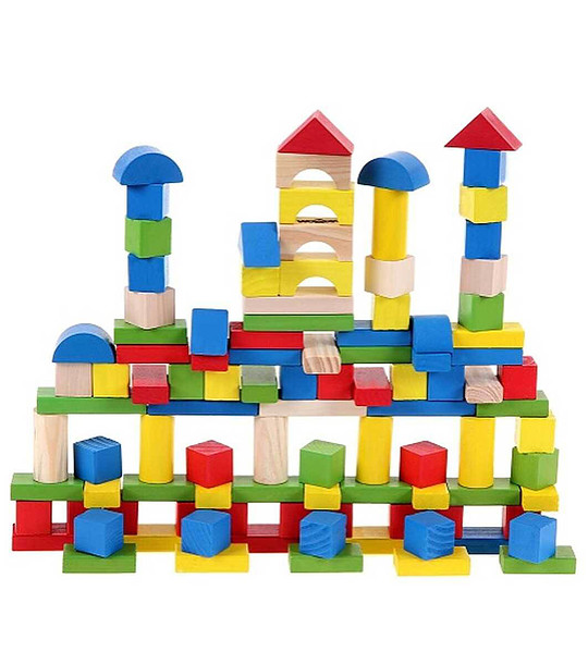 Set de constructii din lemn, colorat, 100 bucati