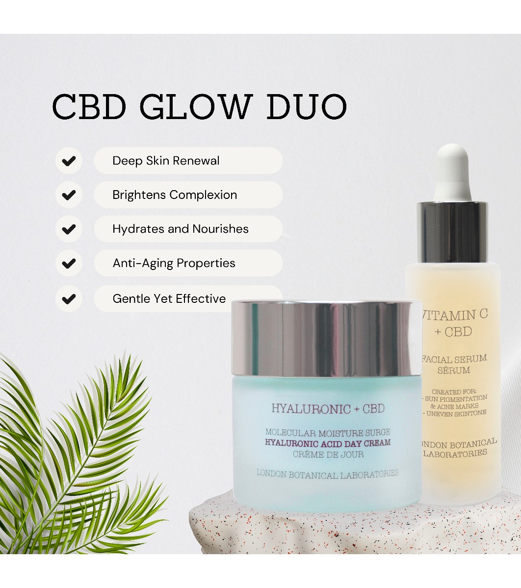 Apă, suc de frunze de Aloe Barbadensis, glicerină, xantan Gumă, Pentilen Glicol, Canabidiol - derivat din extract, tinctură sau rășină de canabis, Ascorbil Glucozidă, Palmitat de Ascorbil, Ulei din semințe de Helianthus Annuus, Extract de rădăcină de Daucus Carota Sativa, Ulei din semințe de Daucus Carota Sativa, Beta-Caroten, Extract de fructe de Ananas Sativus, Extract de semințe de Cannabis Sativa, Filtrat de fermentat din rădăcină de Leuconostoc/ridiche, Fosfolipide, Hialuronat de sodiu, Benzoat de sodiu, Sorbat de potasiu, Citrat de sodiu, EDTA disodic, Acid citric, Parfum, Limonene.